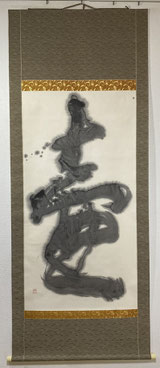 紙本全紙、68×131㎝、淡墨一字「壺」、印一、緞子丸装、箱無。