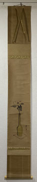 紙本単聯、22×91㎝、淡彩静物図、「屠龍画」、印一、緞子三段装、箱。